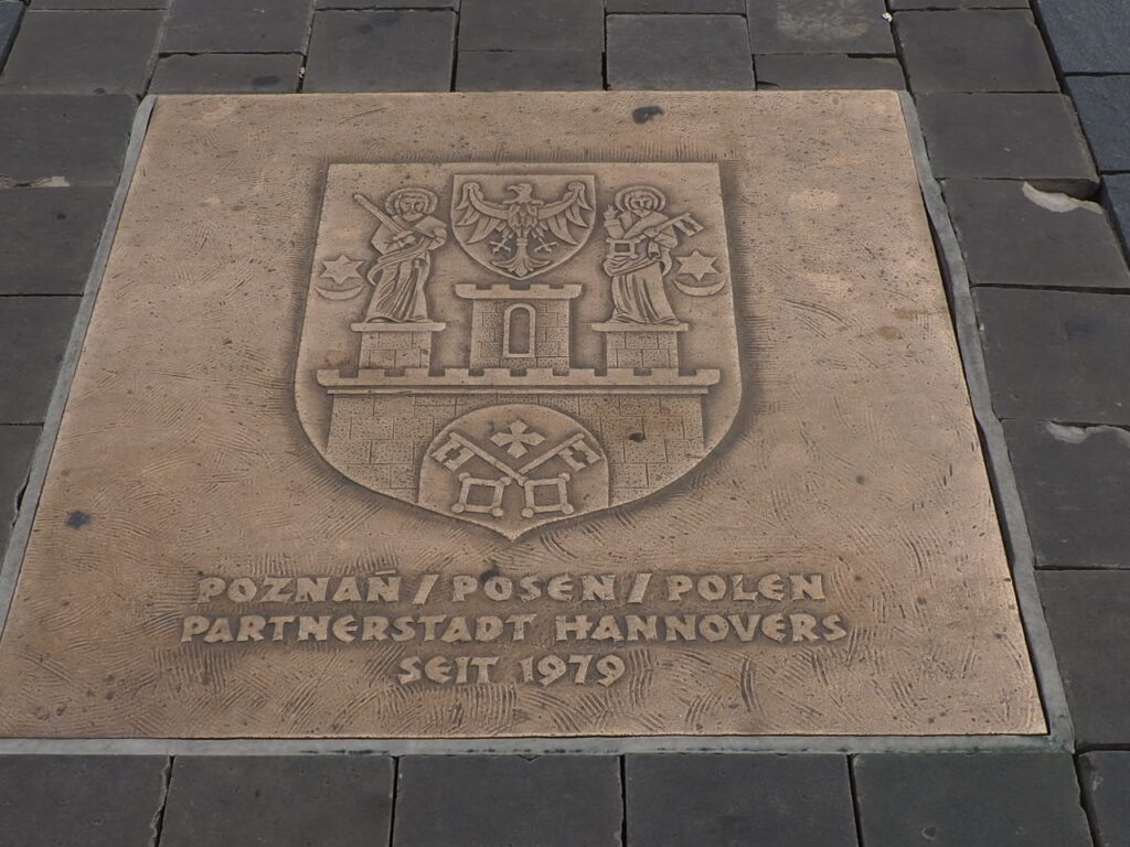 A przed operą w chodniku taka tablica. Faktycznie, pamiętam, że Hanower jest dla Poznania miastem partnerskim.