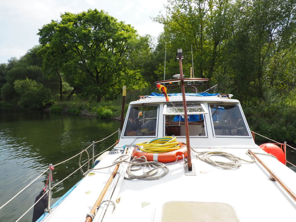 Na noc stanęliśmy po prostu na 70 kilometrze na kotwicy. Była tu dodatkowo, parę metrów od brzegu wbita w dno rura, to się do niej uwiązałem.