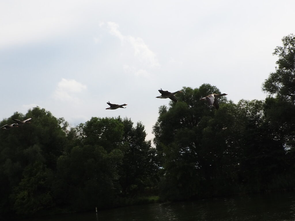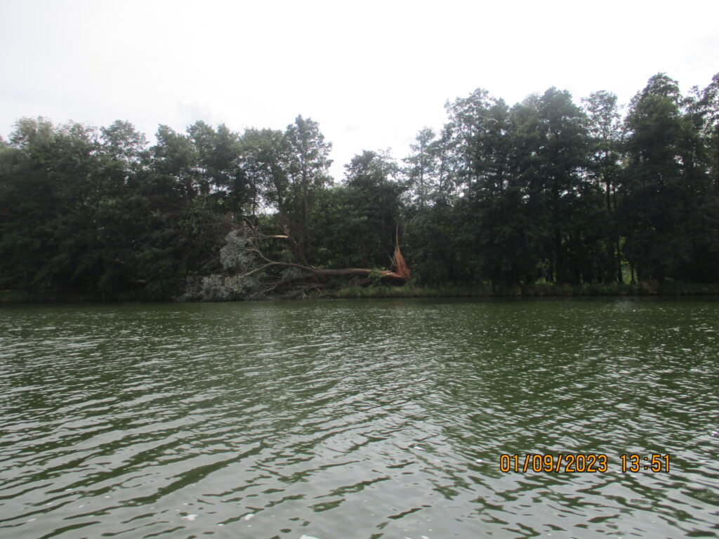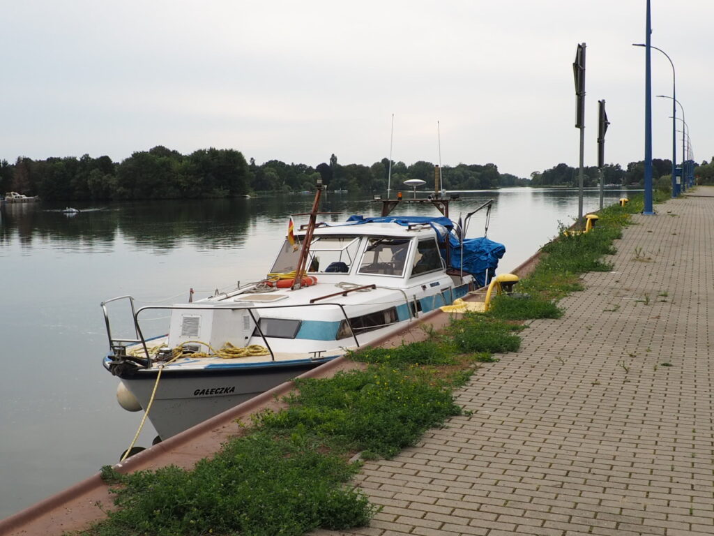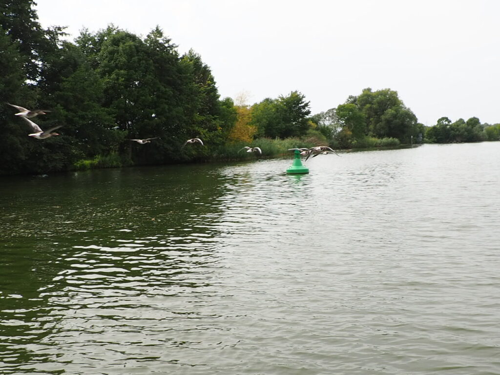 Płynęliśmy rzeką Hawlą. Przepiękna trasa, mnóstwo rozlewisk, zatoczek, można by tam stanąć – wielu tak robi – łowić ryby. Można się tak zaszyć, że nie widać Świata cywilizacyjnego. Woda czyściuteńka. Łabędzie i gęsi szykują się do odlotu. W Brandenburgu poczekałem na śluzę pół godziny i puścili nas samych, bo nie ma ruchu. Zgłaszałem się po angielsku.