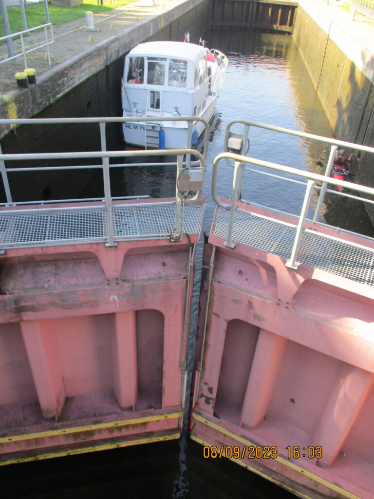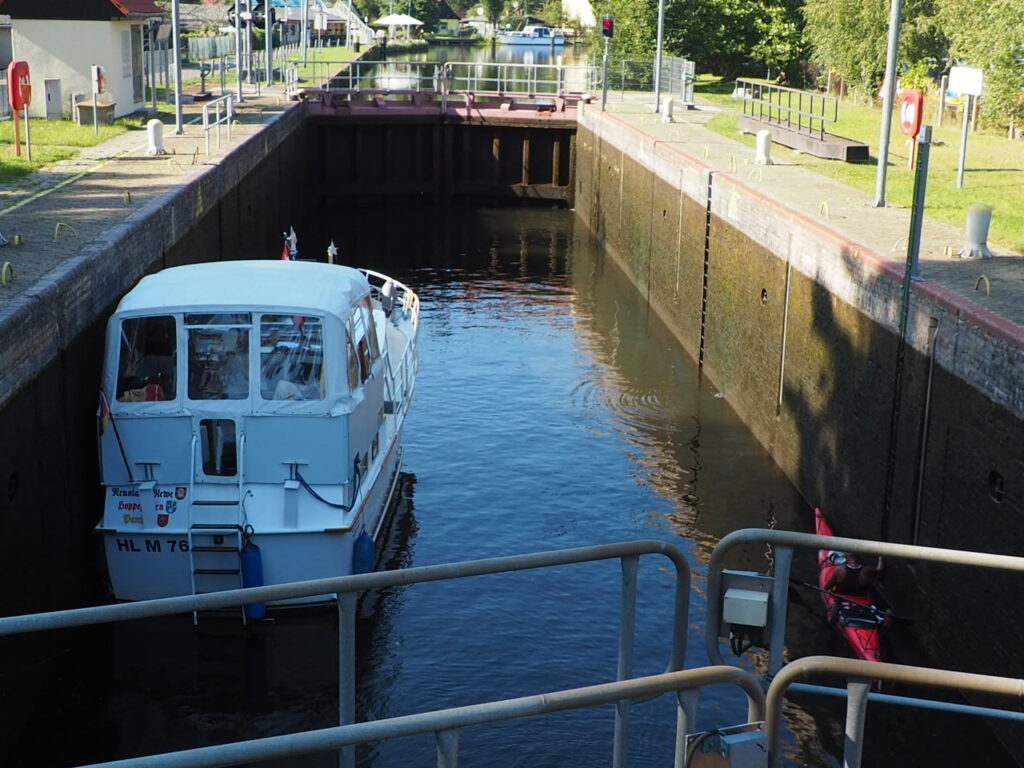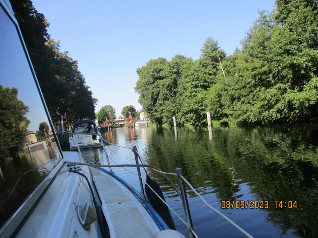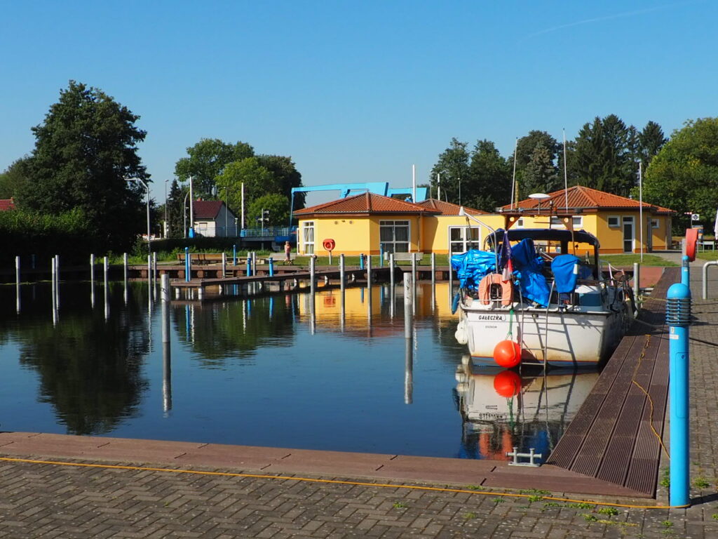 Dziś marina wygląda już zupełnie normalnie i kosztuje 23 euro. Po drodze była samoobsługowa śluza Bischofswerder i most zwodzony zblokowany ze śluzą Zehdenick też samoobsługową.