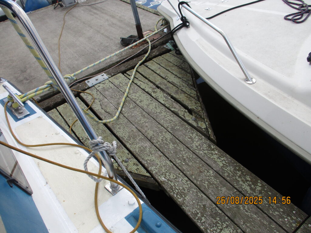 A w ogóle taki poprzeczny pomost, to jest tylko jeden i my go zajęliśmy. Reszta musi schodzić z łodzi przez dziób lub rufę.