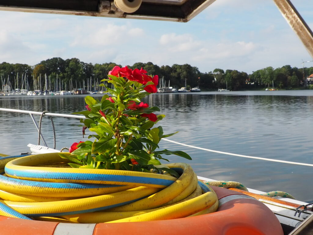 Odpłynęliśmy zaledwie 10 minut, na przeciwny brzeg w stosunku do portu i stoimy na kotwicy. Znowu nadrabiam zaległości na blogu. Stoimy w takiej zatoczce.